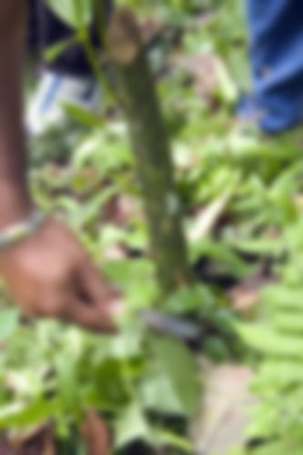Ein neuer Zweig in Richtung Osten, der zweite in Richtung Westen. Und warum zwei? Weil einer verkümmern könnte. Obwohl es in diesem Anbaugebiet ein nicht zu unterschätzendes Problem mit der Kaffeebaum-Krankheit „Rost“ gibt, ist die Plantage La Mami aufgrund intensiver Pflege kaum betroffen.